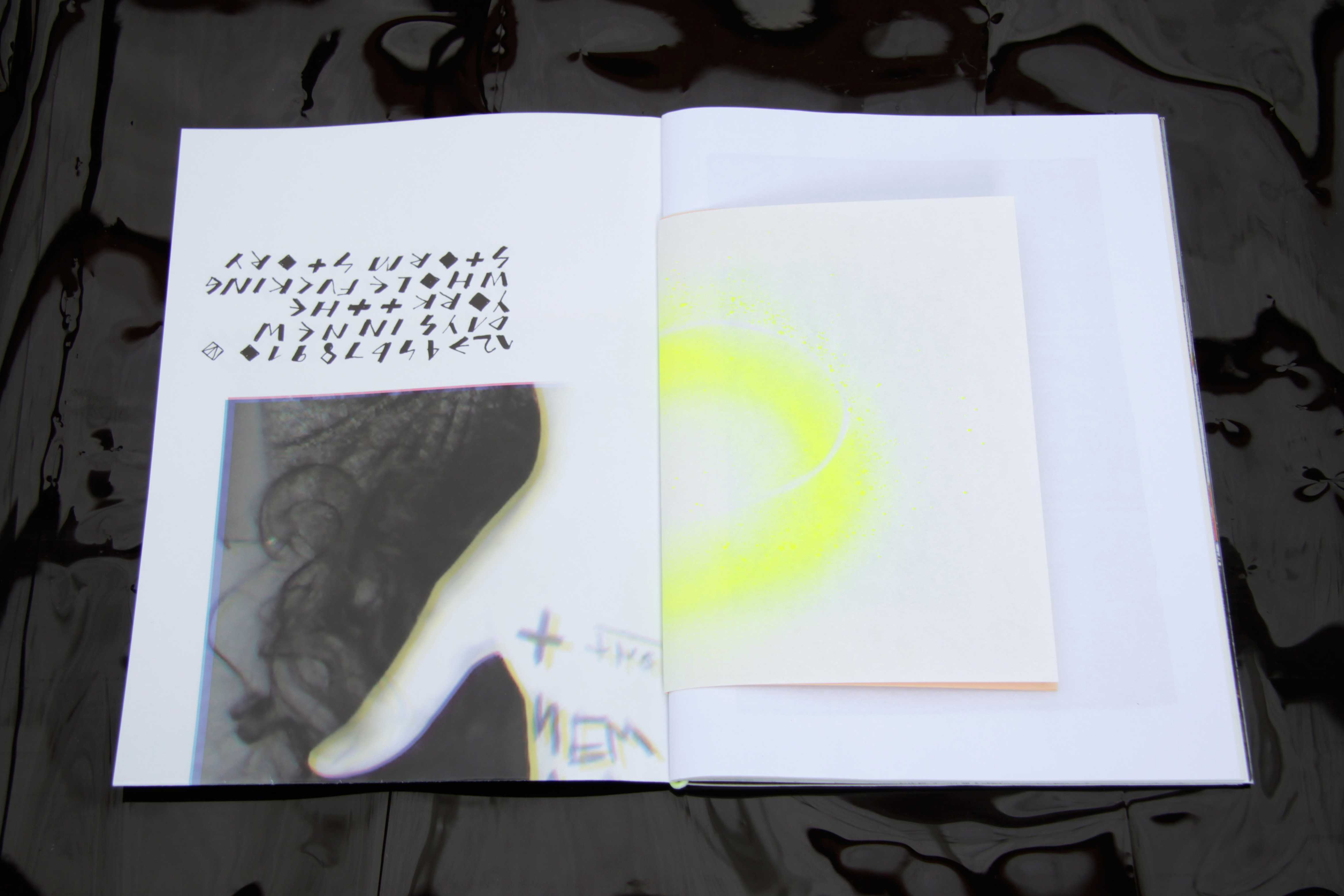 In 2013 we started using print media as a main medium for our work. All material originates from a trip to New York in October 2012. The artist book includes photos, notes, diary-like text passages, pictures of found objects, an atmospheric part on hurricane Sandy and Halloween coinciding, an interview with performance artist Arleen Schloss, a talk between artists Peter Kogler and Tony Oursler, etc.