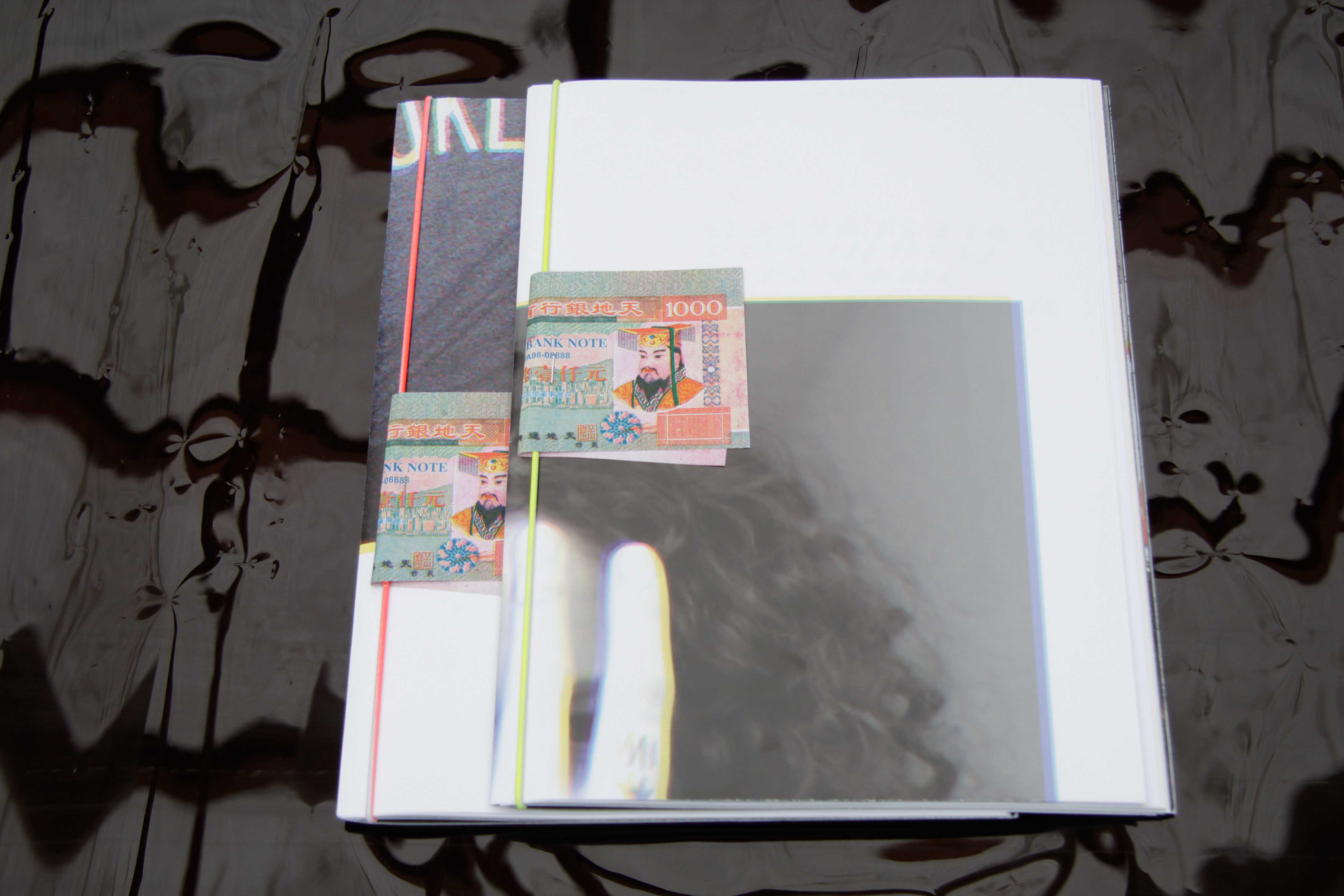 100 p., various printing techniques/paper: digital, offset, xerox, binding: rubber band, saddle stitch, poster cover, 1 note of "Hellbank", 22 x 29.7 cm