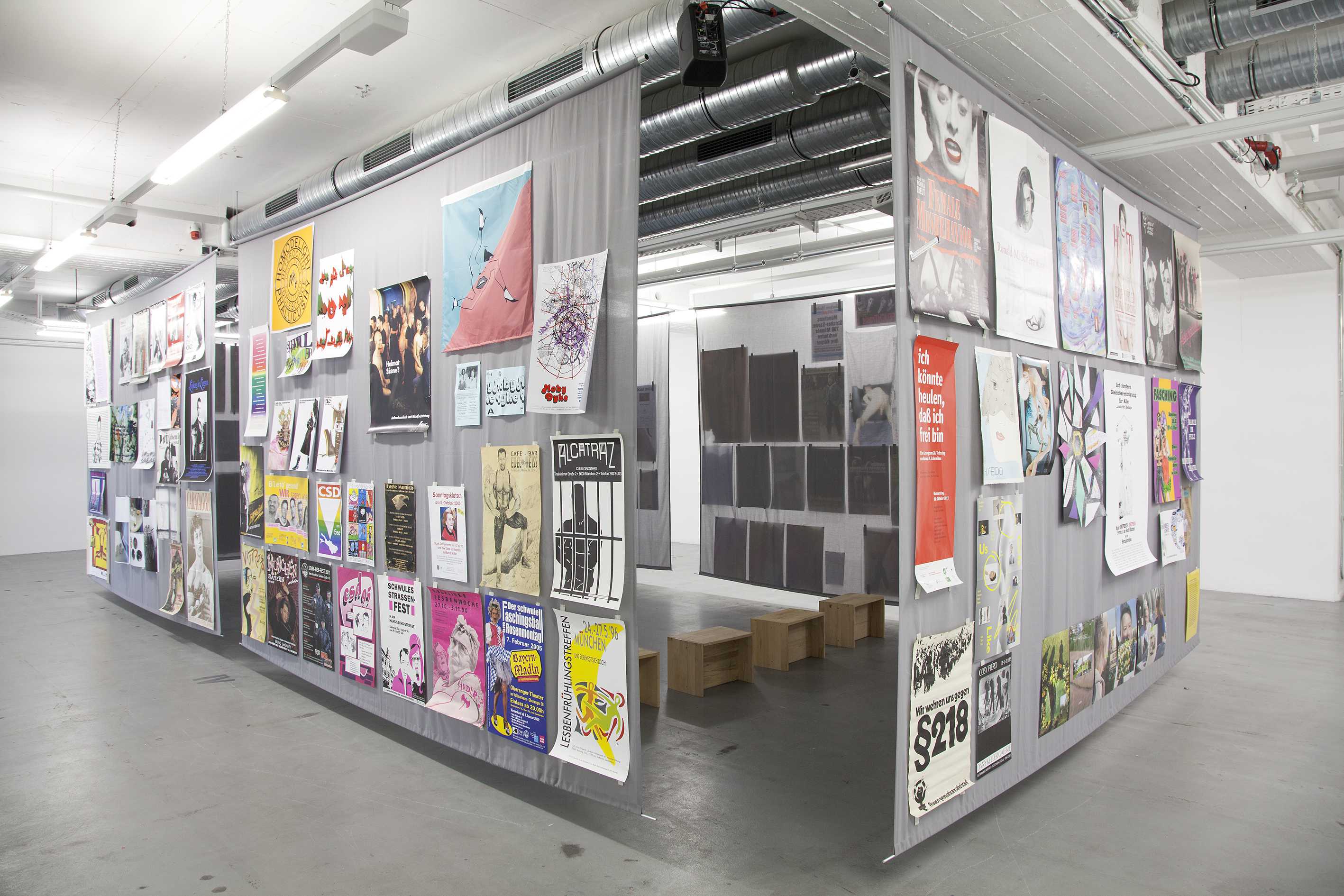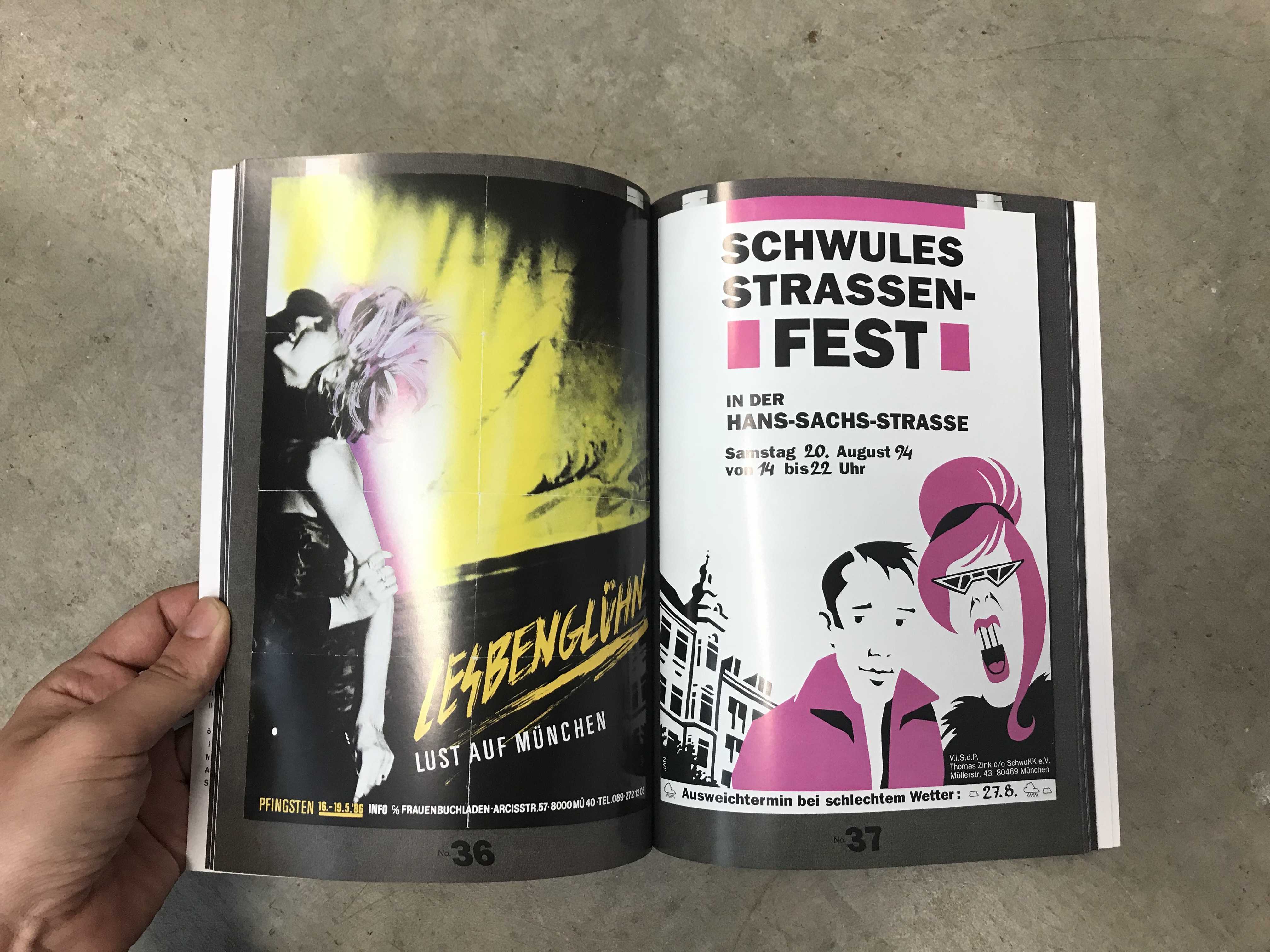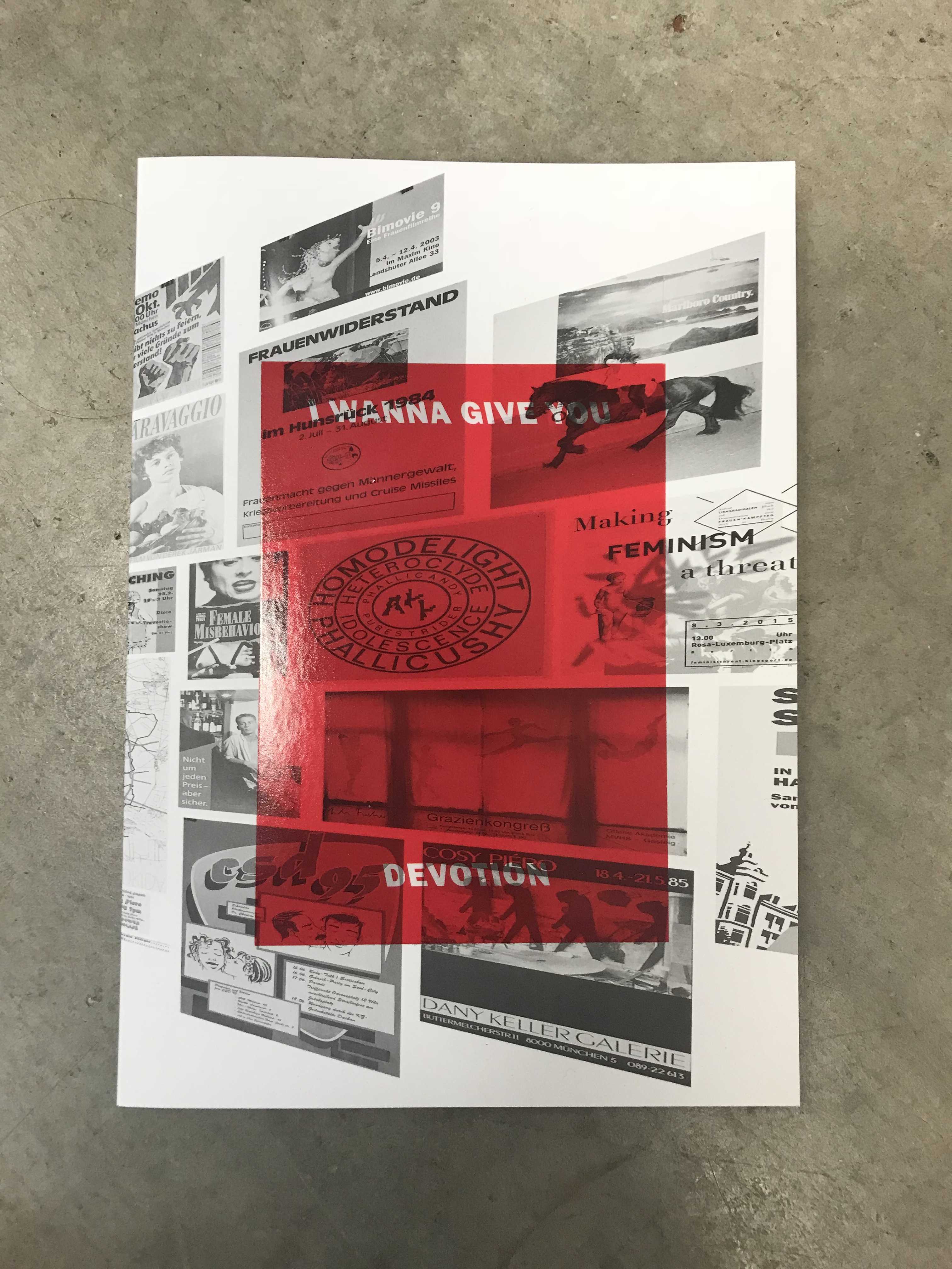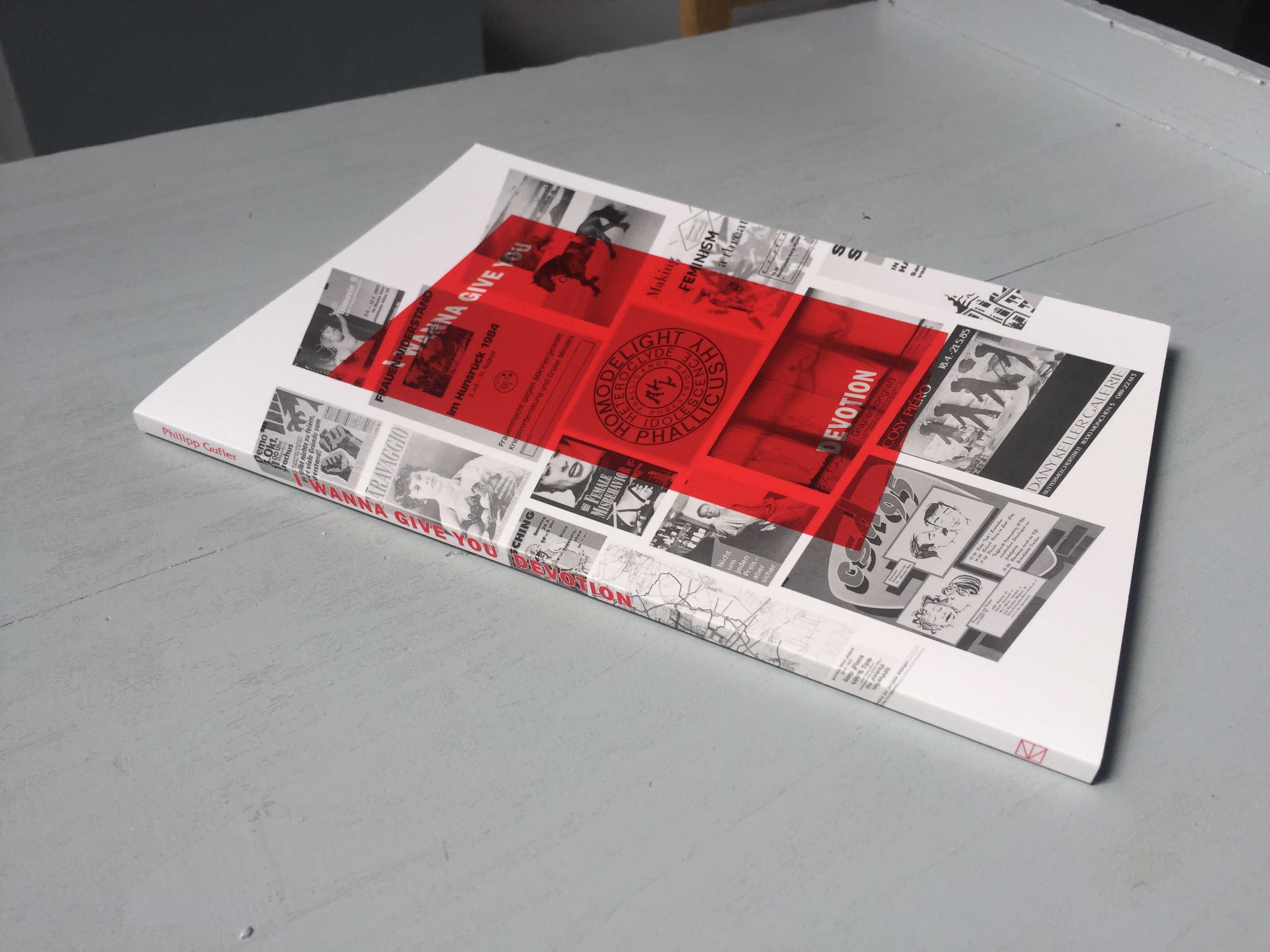 Philipp Gufler realized the installation „I Wanna Give You Devotion" in cooperation with the self-organized archive Forum Queeres Archiv München. The key element is the poster collection of the forum. The artist books combines historical posters/flyers and works by 29 artists and collectives, who Gufler specifically invited in order to question, actualize and expand on the poster collection. The artist book is extended through text contributions by Kerstin Stakemeier/Philipp Gufler, Laura Lang and members of the forum. It’s been published by Hammann Von Mier Verlag in the forum-series „Splitter“, which discusses historical and sociocultural issues and presents historical figures.