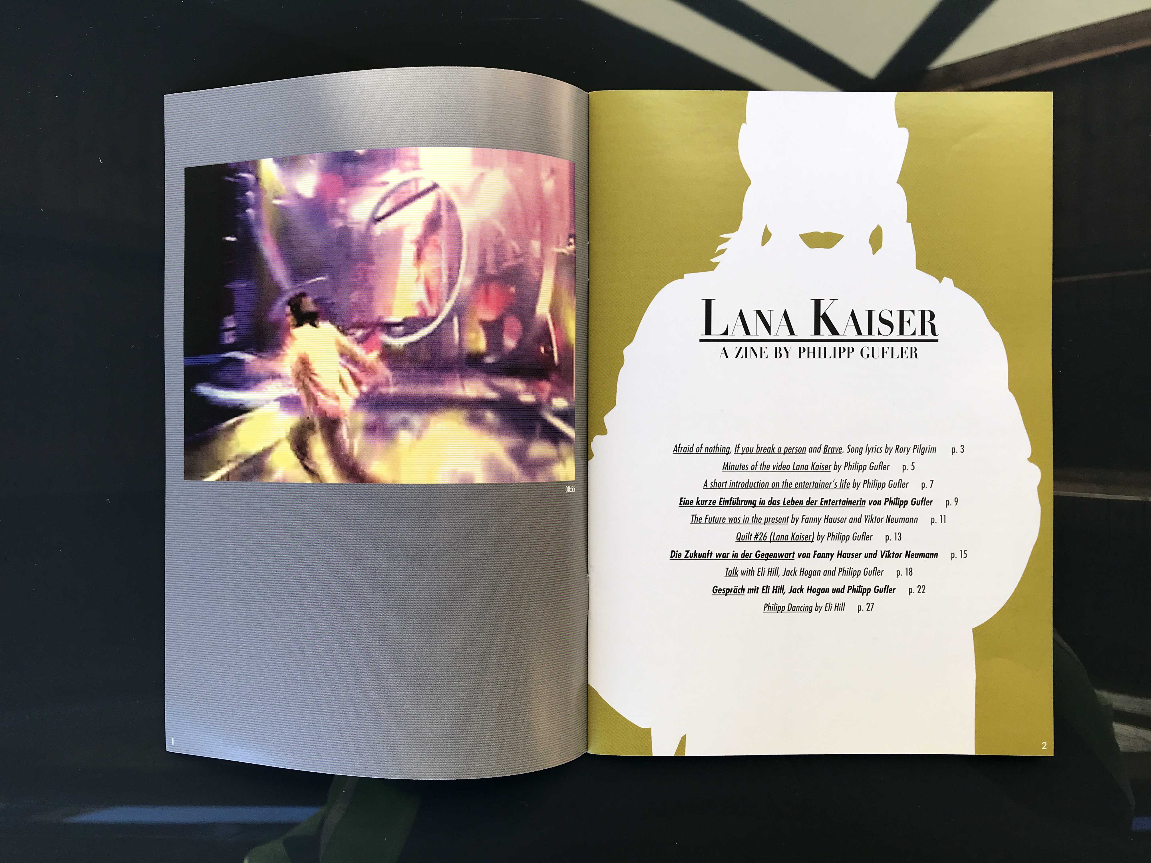 On September 9th 2018, Lana disappeared from a cruise ship on her way to North America. Most media outlets and the majority of the public didn't consider calling her by her chosen name, Lana Kaiser. Philipp Gufler's zine and his video installation of the same title is a personal portrait of the singer and entertainer.