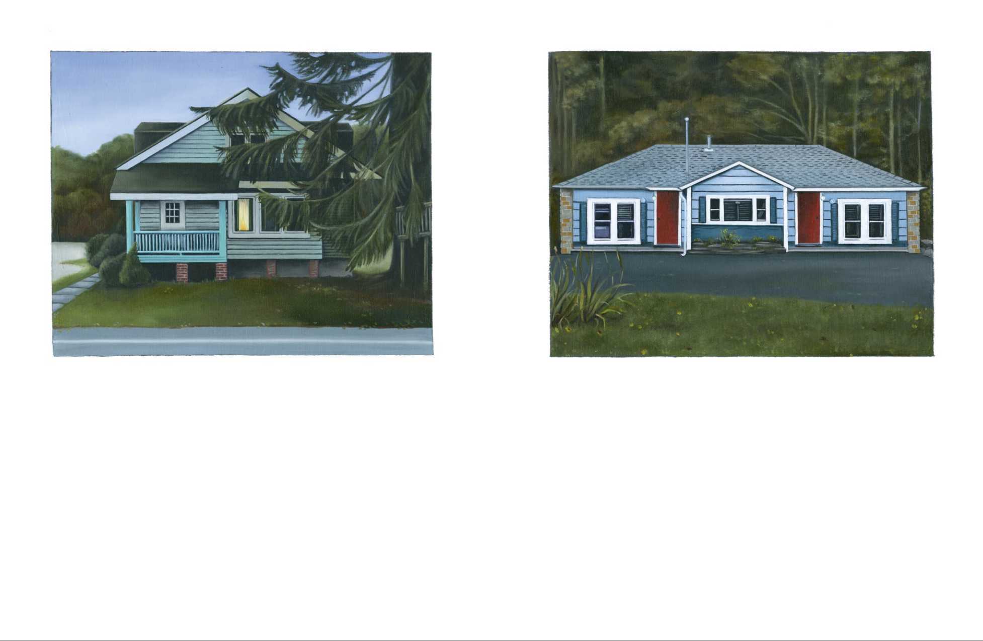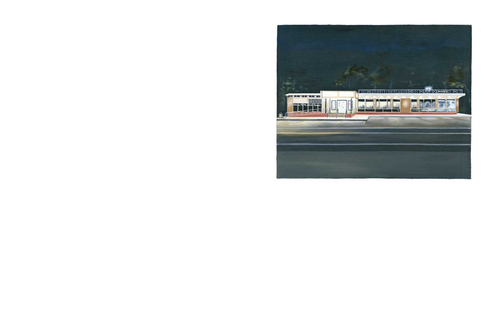 Agloe, New York, as captured in Alina Grasmann’s “Paper Town” series of paintings is the kind of Anytown, USA you’d encounter in countless American movies and books, familiar to audiences the world over with its bygone churches, world famous diners, and Colonial Revival homes. And indeed, Agloe was featured in a book and the subsequent movie, putting it back on the map-- where it belongs-- as audiences set out to find and visit the fictional town. Having read about it in German newspapers, Grasmann, too, set out in September 2017 in search of Agloe and visited Roscoe, New York, nearby which Agloe was first founded on a map. – Eriola Pira