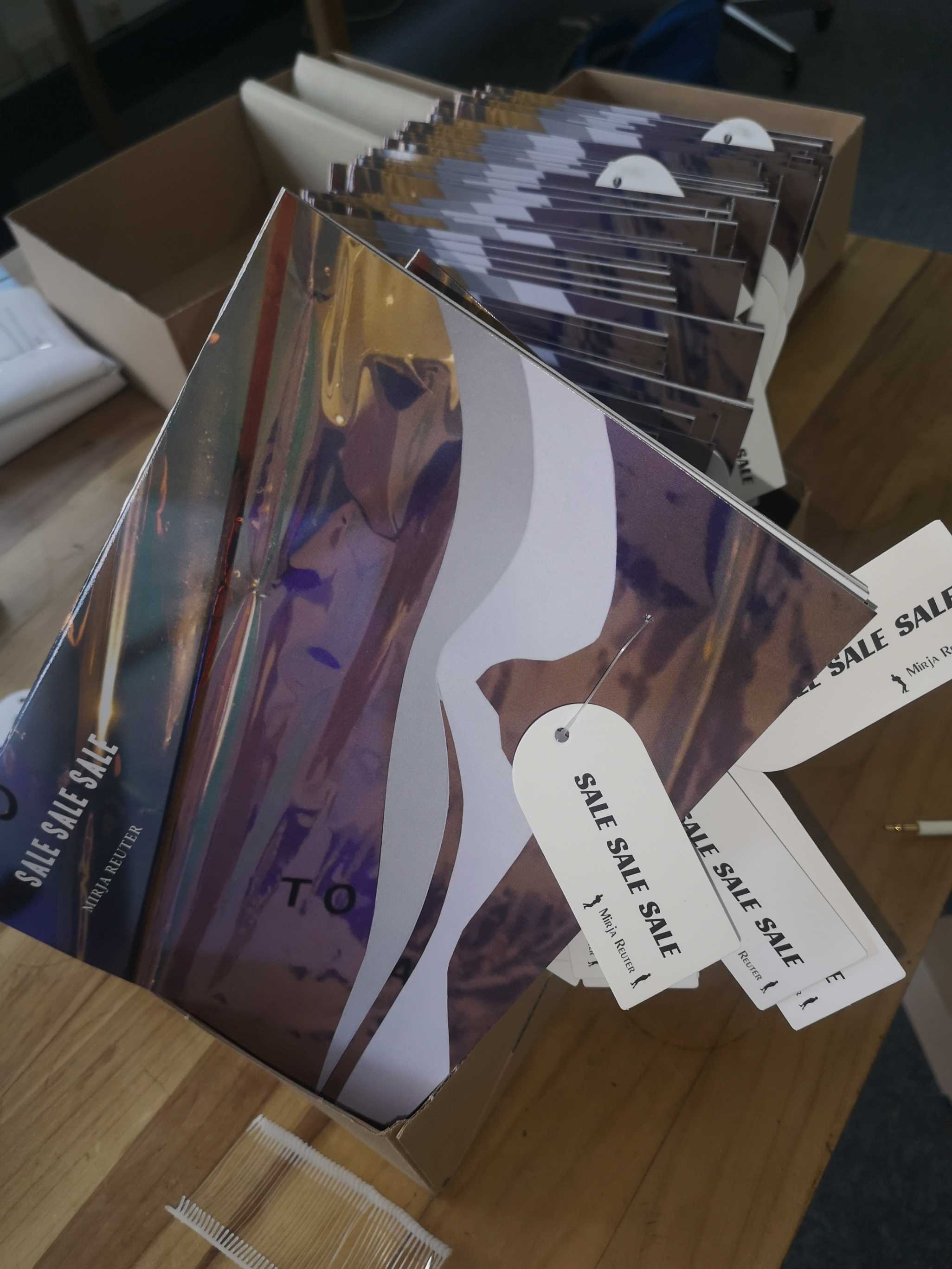 Sale Sale Sale builds on the script of Mirja Reuter's video work de rigeur, created in October 2020 on the occasion of a residency at FLORIDA Lothringer 13. The publication contains parts of the film script and a personal review of the work phase, with photos, collages and drawings. Sale Sale Sale has been released on 24th July 2021 in the form of a staged reading with Donika Kida, Kyrill Constantinides Tank and Mirja Reuter, presented by Ruine München.